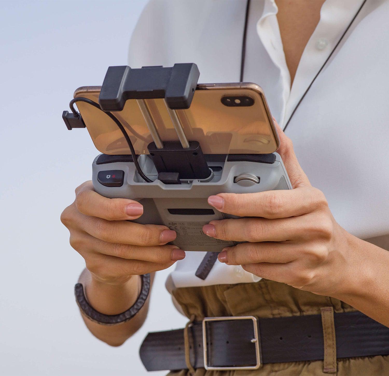 The RC Cable connects the Remote Controller to a mobile device via the Lightning port.